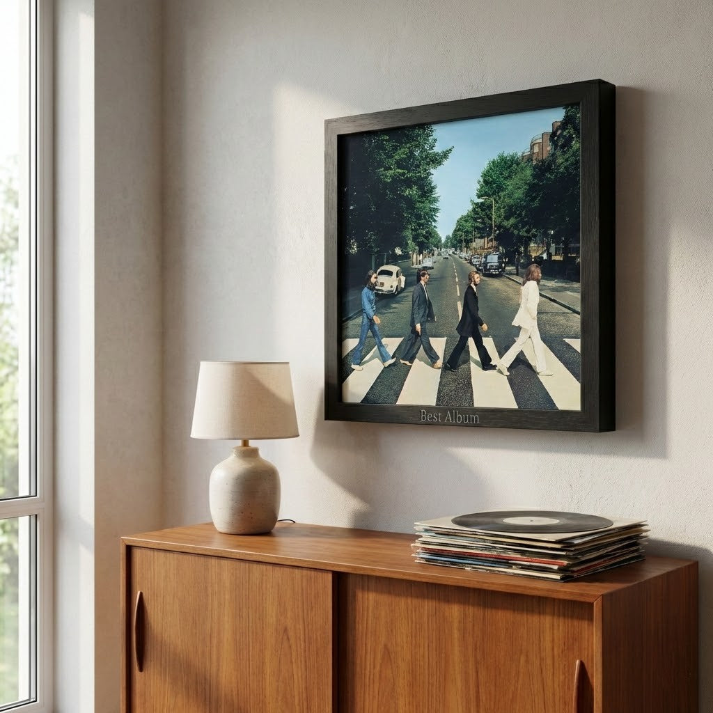 Where do you keep your favourite records? Often, they vanish into a closed box or sit tucked away vertically on a shelf, hiding their beautiful artwork from the world. It’s a shame, because that one special record is more than just music; it’s a memory. With our 'Best Album' frame, you rescue your number one from oblivion. Transform that iconic album from a hidden object into a stylish statement piece on your wall. The sleek black wood and subtle engraving ensure all eyes are drawn to the cover art. Show off what you’re proud of.